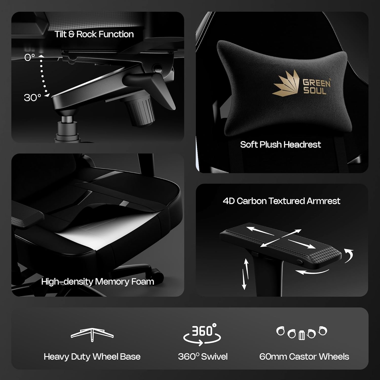 Green Soul Monster Ultimate Series T | Multi-Functional Ergonomic Gaming & Office Chair| Premium Spandex & PU Leather Fabric | Adjustable Neck, Lumbar Pillow | 4D Adjustable Armrests (Full Black)