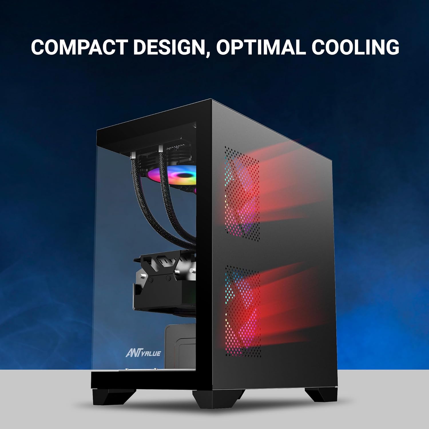 Ant Value Tempered_Glass CV200 Mid-Tower Computer Case/Gaming Cabinet – Black | Support M-ATX, M-ITX | Pre-Installed 3 Static RGB Fans