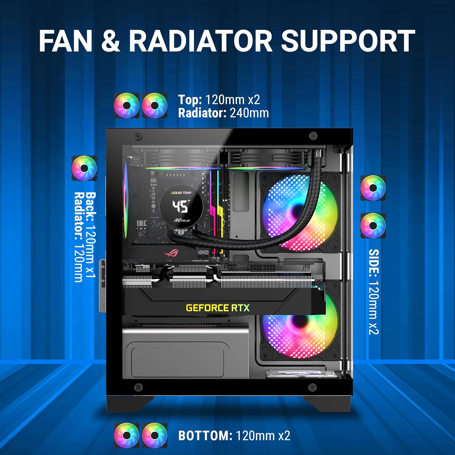 The pre-installed RGB fans are a major highlight of this Mid Tower Computer Case. Gamers can enjoy a stunning visual experience with multiple lighting modes and color options. The tempered glass panels allow the RGB lighting to shine through, creating a dynamic and immersive gaming environment. Users can customize the lighting to match their setup, adding a personal touch and enhancing the overall gaming experience.